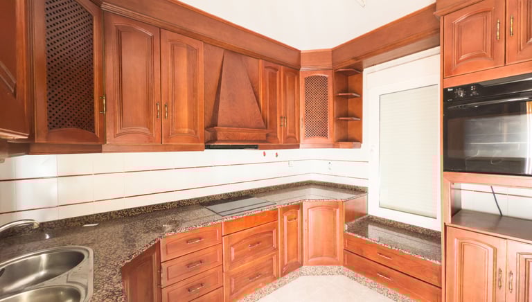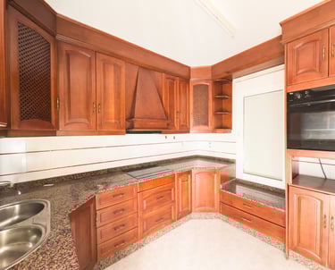 Cocina equipada con salida directa a un gran patio trasero, ideal como zona de ocio o disfrute